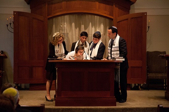 9. As Louisa’s mom — and also an educational consultant who works with many students with significant disabilities — I feel the need to comment as well. Although I am incredibly proud of Louisa (and her brothers) for achieving this special milestone, it’s also important to note that in some ways her preparation was easier than her brothers’. We introduced Louisa to her torah portion far earlier than is typical, and what we soon discovered is that her extraordinary memory kicked in — and she was literally able to memorize her entire portion, sound by sound, in a very short period of time; she was ready to go before the boys had even begun their preparation! What was especially difficult for her was dealing with the transitions — alternating “turns” with her brothers and the clergy, repeatedly alternating between the “bimah” (podium) and her seat, etc. We addressed this issue by having all three kids remain at the bimah for much of the service, and positioning Louisa in strategic locations (frequently between her brothers). The important lesson here for us all is that all kids (with disabilities and without) learn differently, and have unique strengths and challenges. What made Louisa successful is that she was surrounded by people who weren’t swayed by preconceived notions of where she’d struggle, but rather came ready to support her in whatever ways she ultimately needed it — and not where she didn’t.