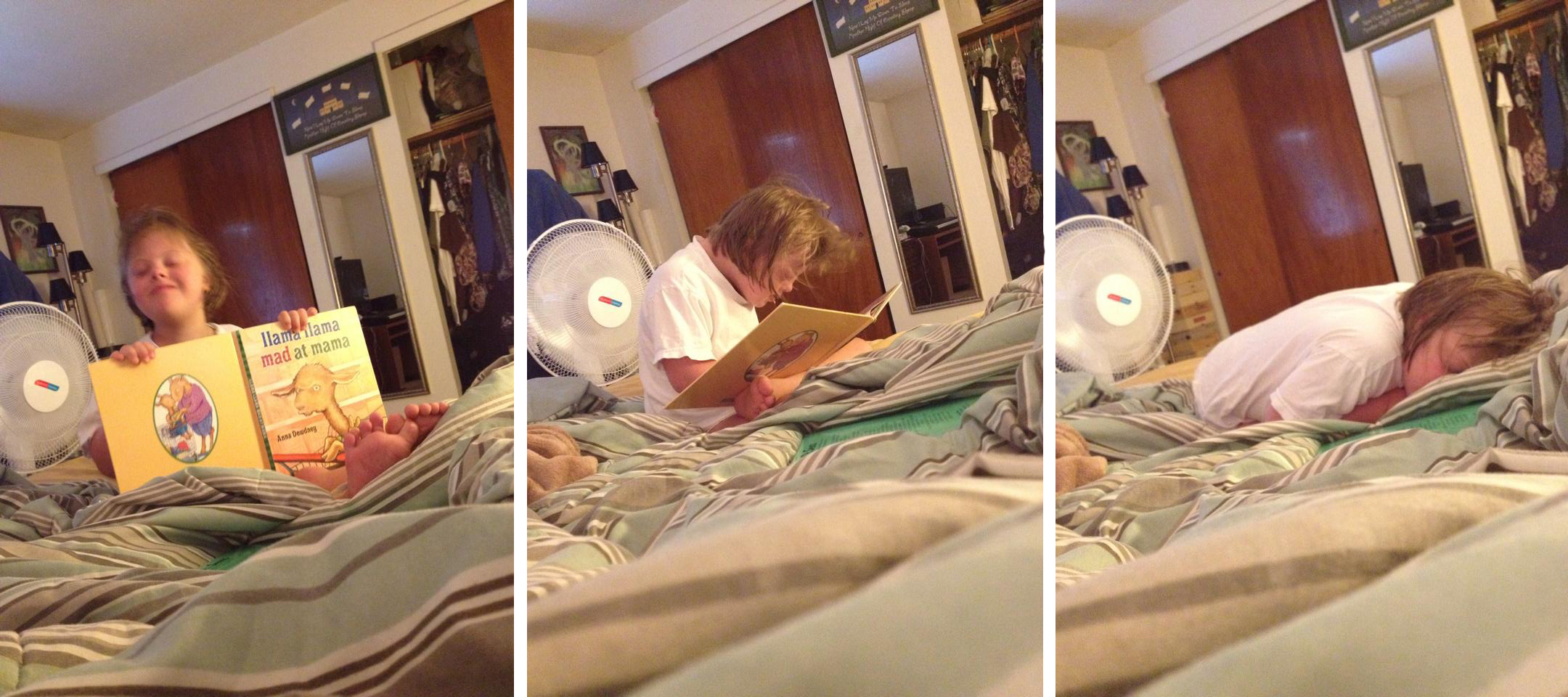 Two years ago, Penelope came to our first assessment clinic for a Pre-K literacy screening. Here she is today, enjoying that popular activity: Reading Yourself to Sleep. One of the many little joys in a reader’s life.